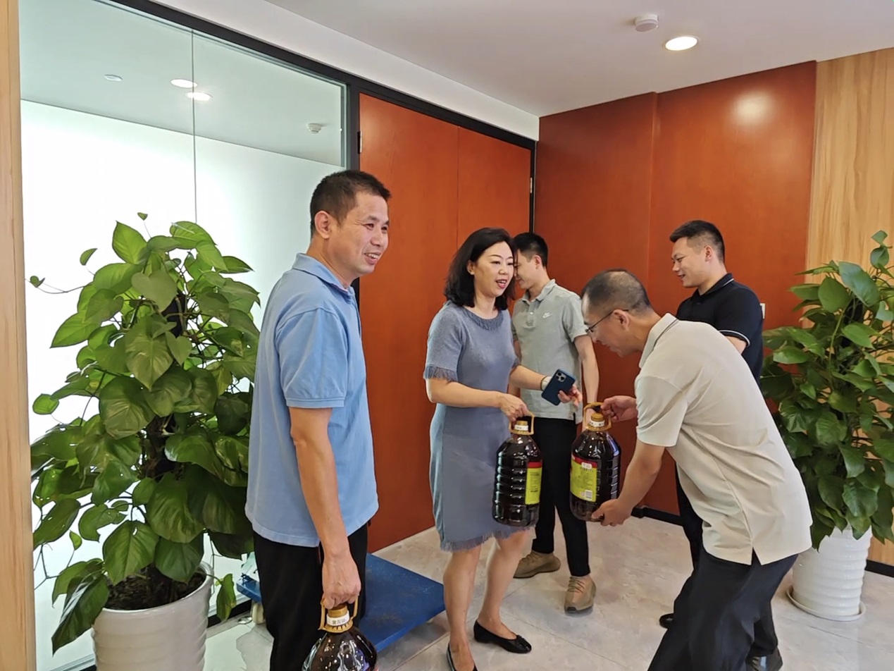 会后,董事长付坚、总经理邓华代表公司向退役军人职工送上了大米、食用油等节日慰问品,并合影留念。